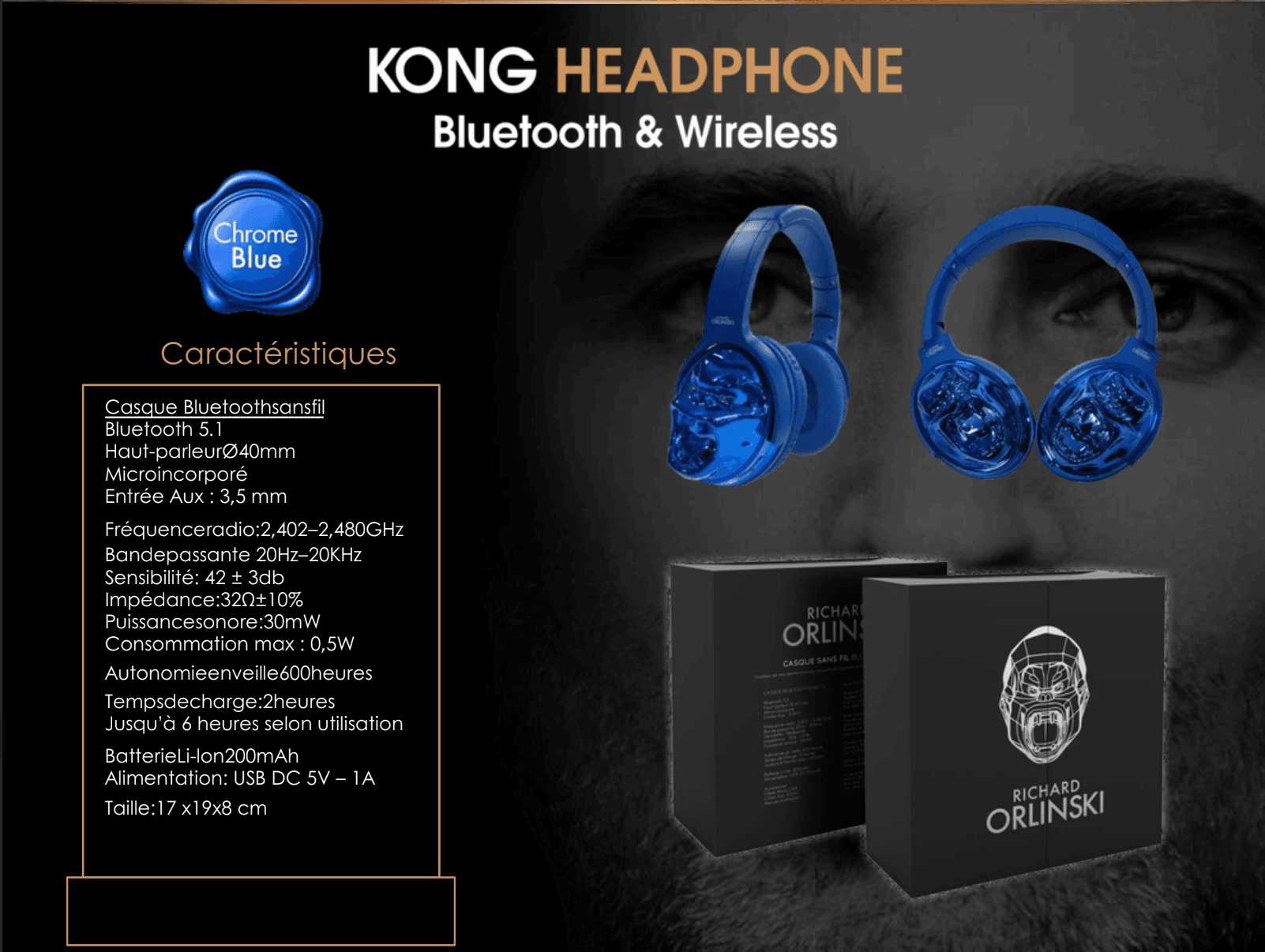 Le Casque Kong Bleu s'impose avec une énergie visuelle rare. Ce bleu profond et électrique transforme chaque port en déclaration de style. Les facettes géométriques d'Orlinski jouent avec cette teinte pour créer des reflets changeants, faisant du casque une sculpture en mouvement perpétuel.